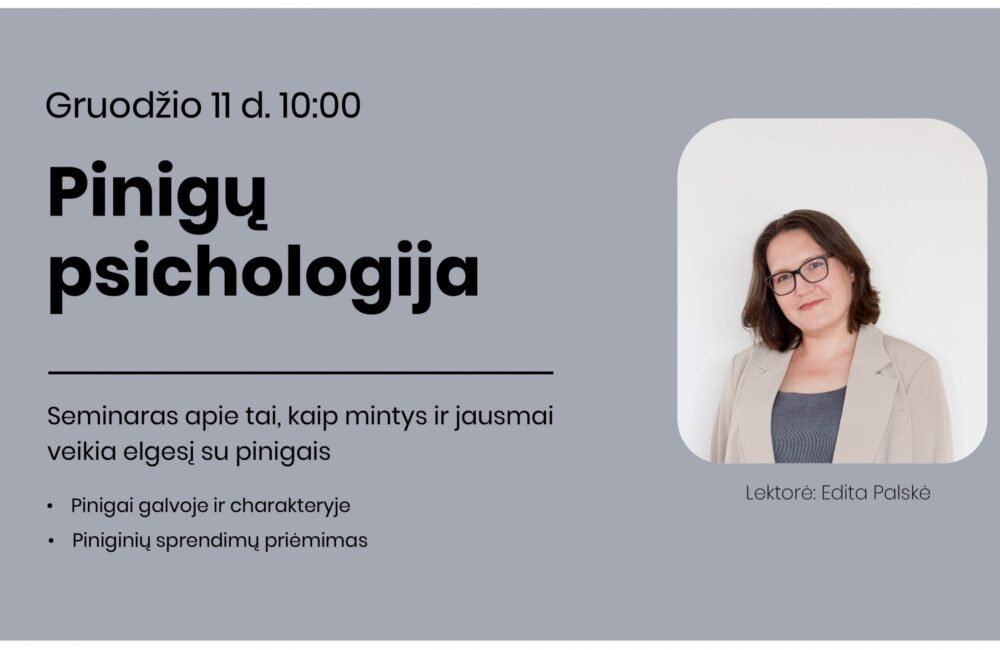 Seminaras apie tai, kaip mintys ir jausmai veikia elgesį su pinigais. Pinigai galvoje ir charakteryje Piniginių sprendimų priėmimas Lektorė: Edita Palskė “Pinigai yra resursas, kuris...